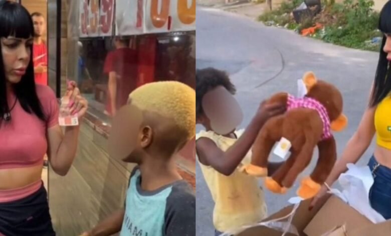 No primeiro momento, Kérollen aborda um menino negro na rua e pergunta se ele prefere receber R$ 10 ou um presente. Ao escolher o presente, o garoto recebe uma banana e reage com estranhamento, dizendo: “só isso?”. Em seguida, Kérollen insiste que ele “olhe direito” e afirme que gostou.