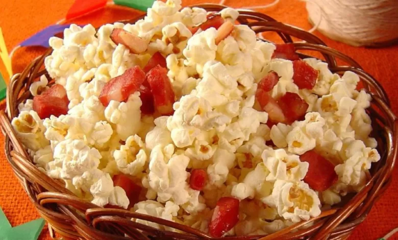 Pipoca com bacon e linguiça – Foto: Stela Handa